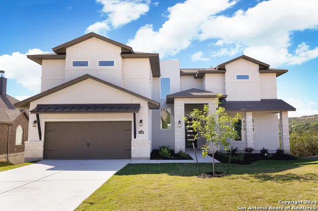 The home features a spacious office that can also double as an additional first-floor bedroom or guest room. Relax and enjoy the bluffview from your patio. Walking distance to top-rated Comal ISD Campus elementary, middle, and high schools for families or grandparents.** From the grand foyer, which welcomes you into a realm of refined luxury, this home boasts four bedrooms, three full bathrooms, and one-half bathroom, each meticulously crafted with a blend of elegance and comfort. The guest half bathroom downstairs ensures privacy for the lower-level bedrooms. Upon entry, the soaring ceilings of the foyer flow seamlessly throughout the home, accentuating the expansive open floor plan. The living room, centered around a striking architectural fireplace. The gourmet kitchen is a chef's dream, featuring an oversized island, gas range, stainless steel appliances, and ample cabinet space. A spacious study/office offers a peaceful workspace for multiple users or can be used as an additional bedroom. The private master suite provides a tranquil escape, boasting a spa-like bathroom a walk-in shower for ultimate relaxation. Upstairs, a game room, 3 bedroom, and 2 bathroom. Conveniently situated near Highway 281, this residence offers easy and quick access to San Antonio's attractions while embracing the peaceful allure of Hill Country living. More than just a residence, this property offers a lifestyle of luxury. Don't miss the opportunity to discover the heights of opulence in Kinder Ranch Settlers Ridge.